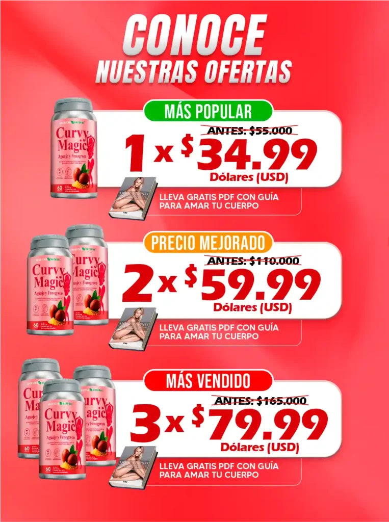 Completa tus datos para finalizar tu pedidoCURVY MAGIC1. Seleccione su Oferta 🛡️ 1 UNIDAD1 CURVY MAGIC + ENVÍO GRATIS+ PDF CON GUÍA PARA AMAR TU CUERPO $45 $30 ✨ PROMOCIÓN2 CURVY MAGIC + ENVÍO GRATIS+ PDF CON GUÍA PARA AMAR TU CUERPO $90 $60 🔥 MÁS VENDIDO3 CURVY MAGIC + ENVÍO GRATIS+ PDF CON GUÍA PARA AMAR TU CUERPO $135 $80NombresApellidosCédula de identidadNúmero de WhatsAppCorreo ElectrónicoProvinciaSeleccione su provinciaAzuayBolívarCañarCarchiChimborazoCotopaxiEl OroEsmeraldasGalápagosGuayasImbaburaLojaLos RíosManabíMorona SantiagoNapoOrellanaPastazaPichinchaSanta ElenaSanto Domingo de los TsáchilasSucumbíosTungurahuaZamora ChinchipeCiudadELIGE CÓMO RECIBIR TU PEDIDO: ➡️ 🏢 Retirar en oficina Servientrega 🏠 Enviar a Domicilio o TrabajoDirección (lo más completa posible)Seleccione su Método de Pago 💵 En efectivo al recibir (pago contra entrega) ➡️Por transferencia (¡Recibe un DESCUENTO de $2!)ENVÍO 100% SEGURO CON: RESUMEN DE SU COMPRASubtotal (Precio Regular)$0.00Envío Express 🚚GRATISAhorro por Oferta 🏷️ -$0.00Descuento Transferencia-$2.00Selecciona un método de pago...TOTAL A PAGAR:$0.00CONFIRMAR COMPRA