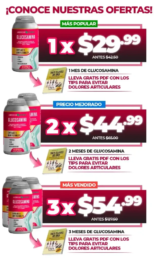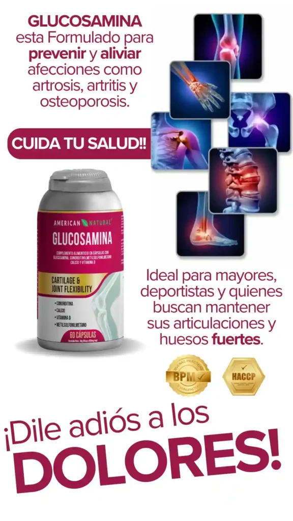 Completa tus datos para finalizar tu pedidoGLUCOSAMINA1. Seleccione su Oferta 🛡️ 1 MES TRATAMIENTO1 GLUCOSAMINA + ENVÍO GRATIS+ PDF TIPS EVITAR DOLOR ARTICULAR $45 $30 ✨ PRECIO ESPECIAL2 GLUCOSAMINA + ENVÍO GRATIS+ PDF TIPS EVITAR DOLOR ARTICULAR $90 $45 🔥 MÁS VENDIDO3 GLUCOSAMINA + ENVÍO GRATIS+ PDF TIPS EVITAR DOLOR ARTICULAR $135 $55NombresApellidosCédula de identidadNúmero de WhatsAppCorreo ElectrónicoProvinciaSeleccione su provinciaAzuayBolívarCañarCarchiChimborazoCotopaxiEl OroEsmeraldasGalápagosGuayasImbaburaLojaLos RíosManabíMorona SantiagoNapoOrellanaPastazaPichinchaSanta ElenaSanto Domingo de los TsáchilasSucumbíosTungurahuaZamora ChinchipeCiudadELIGE CÓMO RECIBIR TU PEDIDO: ➡️ 🏢 Retirar en oficina Servientrega 🏠 Enviar a Domicilio o TrabajoDirección (lo más completa posible)Seleccione su Método de Pago 💵 En efectivo al recibir (pago contra entrega) ➡️Por transferencia (¡Recibe un DESCUENTO de $2!)ENVÍO 100% SEGURO CON: RESUMEN DE SU COMPRASubtotal (Precio Regular)$0.00Envío Express 🚚GRATISAhorro por Oferta 🏷️ -$0.00Descuento Transferencia-$2.00Selecciona un método de pago...TOTAL A PAGAR:$0.00CONFIRMAR COMPRA