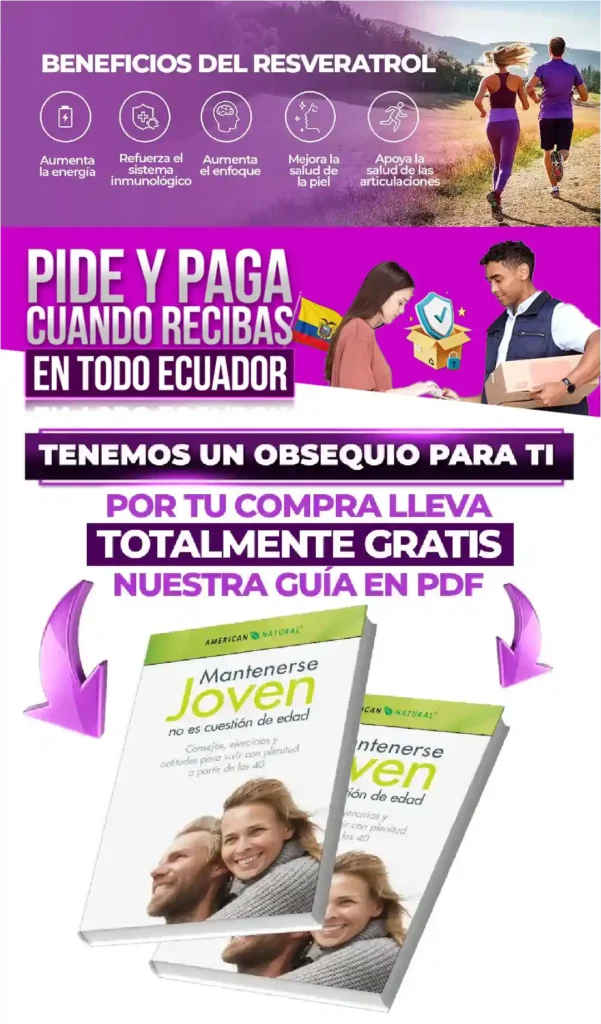 Completa tus datos para finalizar tu pedidoRESVERATROL MORADO1. Seleccione su Oferta 🛡️ 1 FRASCO1 RESVERATROL + ENVÍO GRATIS+ PDF TIPS PARA MANTENERSE JOVEN $55 $38 ✨ PRECIO ESPECIAL2 RESVERATROL + ENVÍO GRATIS+ PDF TIPS PARA MANTENERSE JOVEN $110 $60 🔥 MÁS VENDIDO3 RESVERATROL + ENVÍO GRATIS+ PDF TIPS PARA MANTENERSE JOVEN $165 $80NombresApellidosCédula de identidadNúmero de WhatsAppCorreo ElectrónicoProvinciaSeleccione su provinciaAzuayBolívarCañarCarchiChimborazoCotopaxiEl OroEsmeraldasGalápagosGuayasImbaburaLojaLos RíosManabíMorona SantiagoNapoOrellanaPastazaPichinchaSanta ElenaSanto Domingo de los TsáchilasSucumbíosTungurahuaZamora ChinchipeCiudadELIGE CÓMO RECIBIR TU PEDIDO: ➡️ 🏢 Retirar en oficina Servientrega 🏠 Enviar a Domicilio o TrabajoDirección (lo más completa posible)Seleccione su Método de Pago 💵 En efectivo al recibir (pago contra entrega) ➡️Por transferencia (¡Recibe un DESCUENTO de $2!)ENVÍO 100% SEGURO CON: RESUMEN DE SU COMPRASubtotal (Precio Regular)$0.00Envío Express 🚚GRATISAhorro por Oferta 🏷️ -$0.00Descuento Transferencia-$2.00Selecciona un método de pago...TOTAL A PAGAR:$0.00CONFIRMAR COMPRA